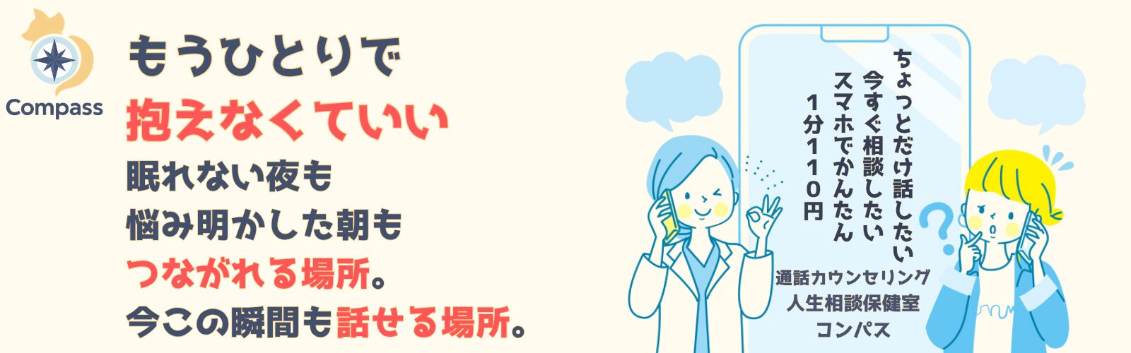 コンパスは、医療行為(診療・診断・治療・指示)を行うサービスではありません。対話を通じて、心の整理やストレスケアをお手伝いする相談サービスです。